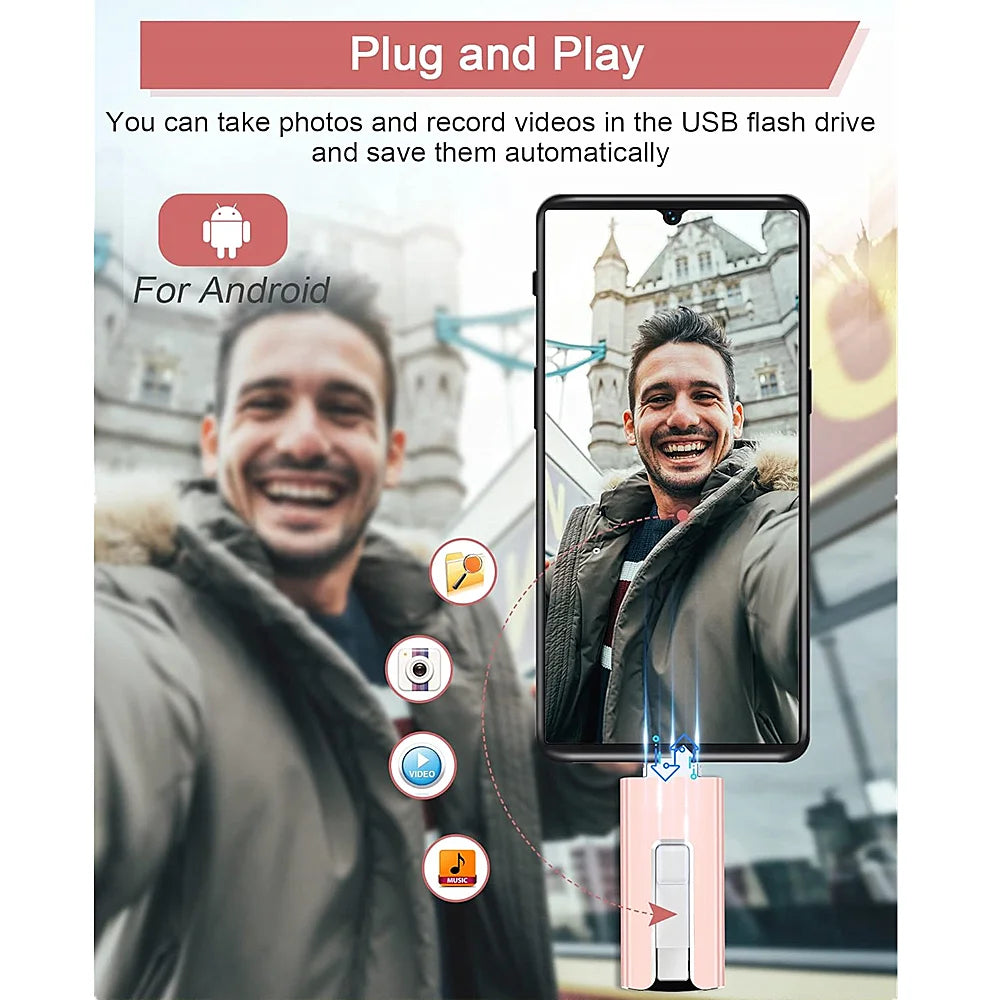 This flash drive provides more external space for phones, iPads, iPods, Android devices and computers, more stable and faster transfer, so you no longer have to worry about memory problems.